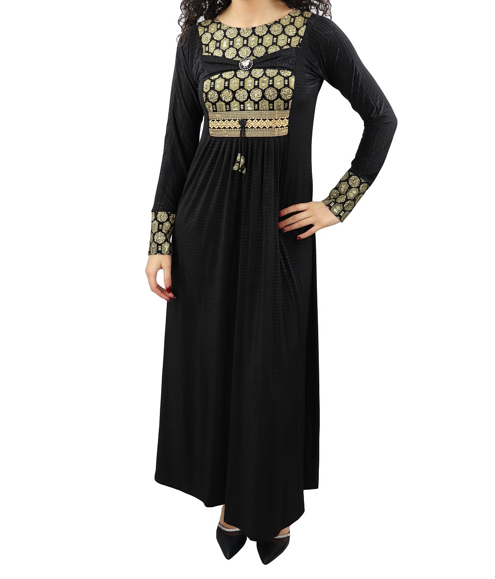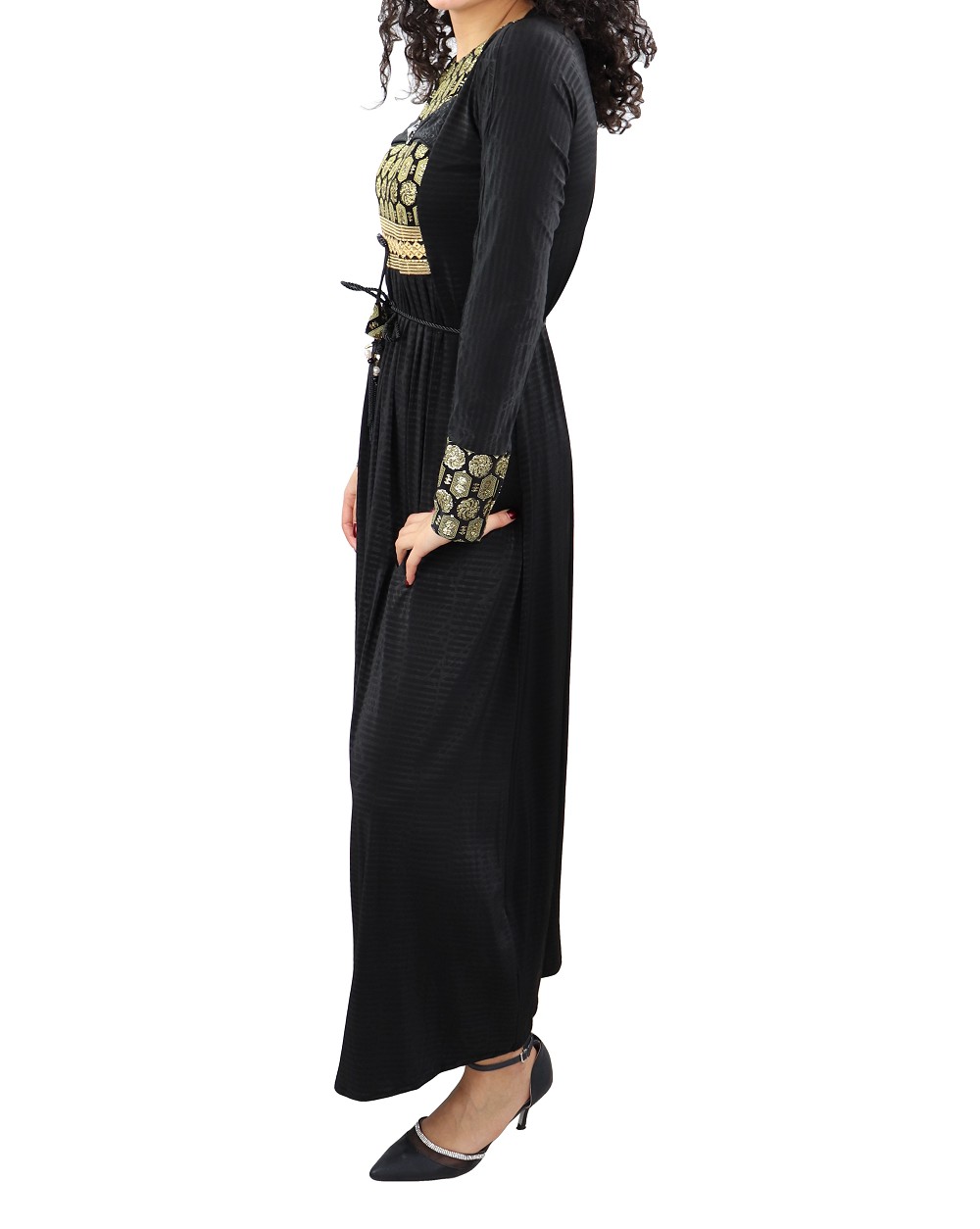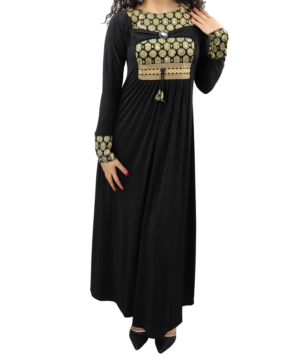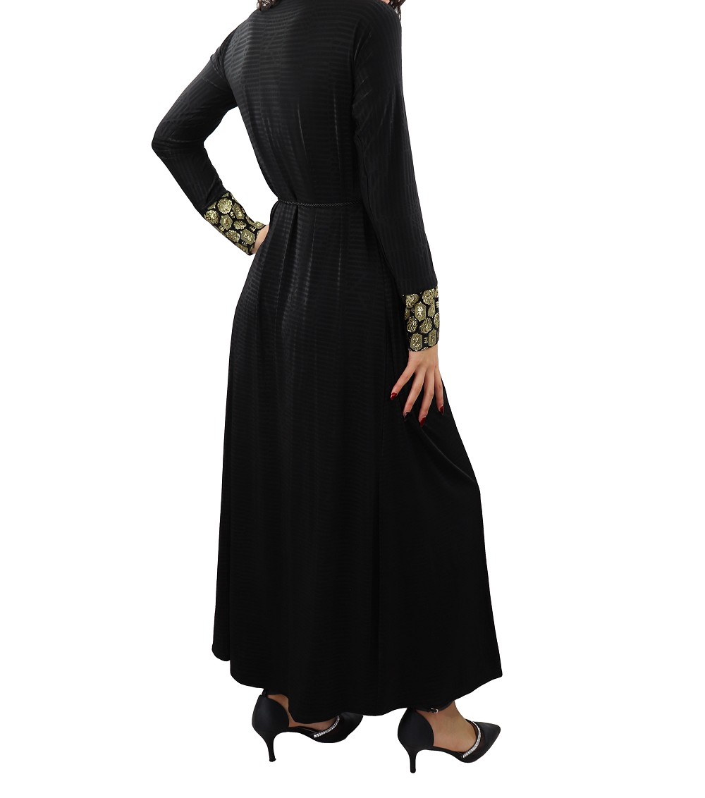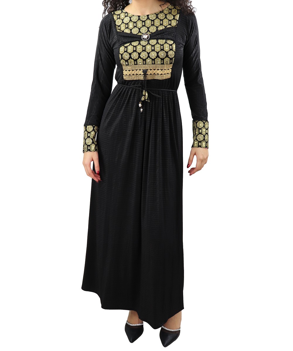 Robe Abaya Dubaï noire de qualité avec bande brodée dorée et strass - REF. 38221 (39.90 €)