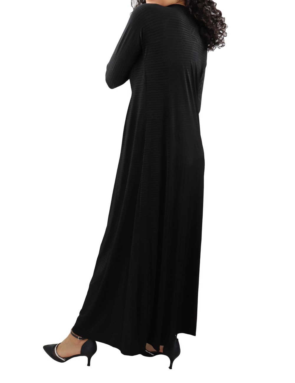 Robe de soirée style Abaya Dubaï noire ouverte de qualité avec broderie et strass et ceinture interne - REF. 38191 (49.00 €)