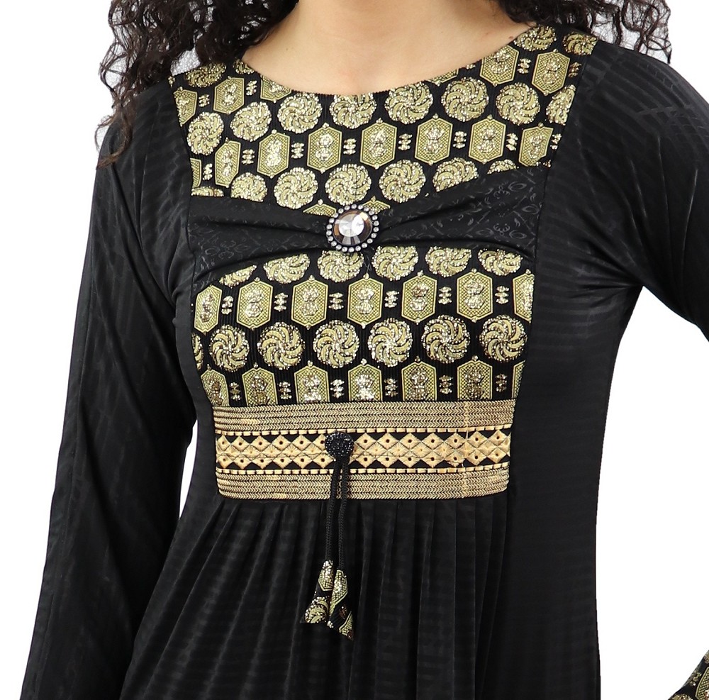Robe longue effet velours avec broderies pour femme - Couleur Noir - REF. 33623 (29.00 €)