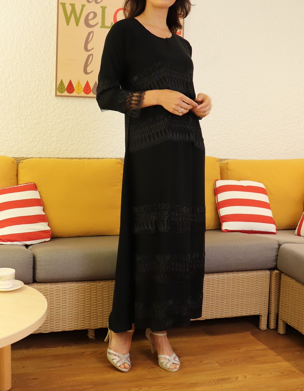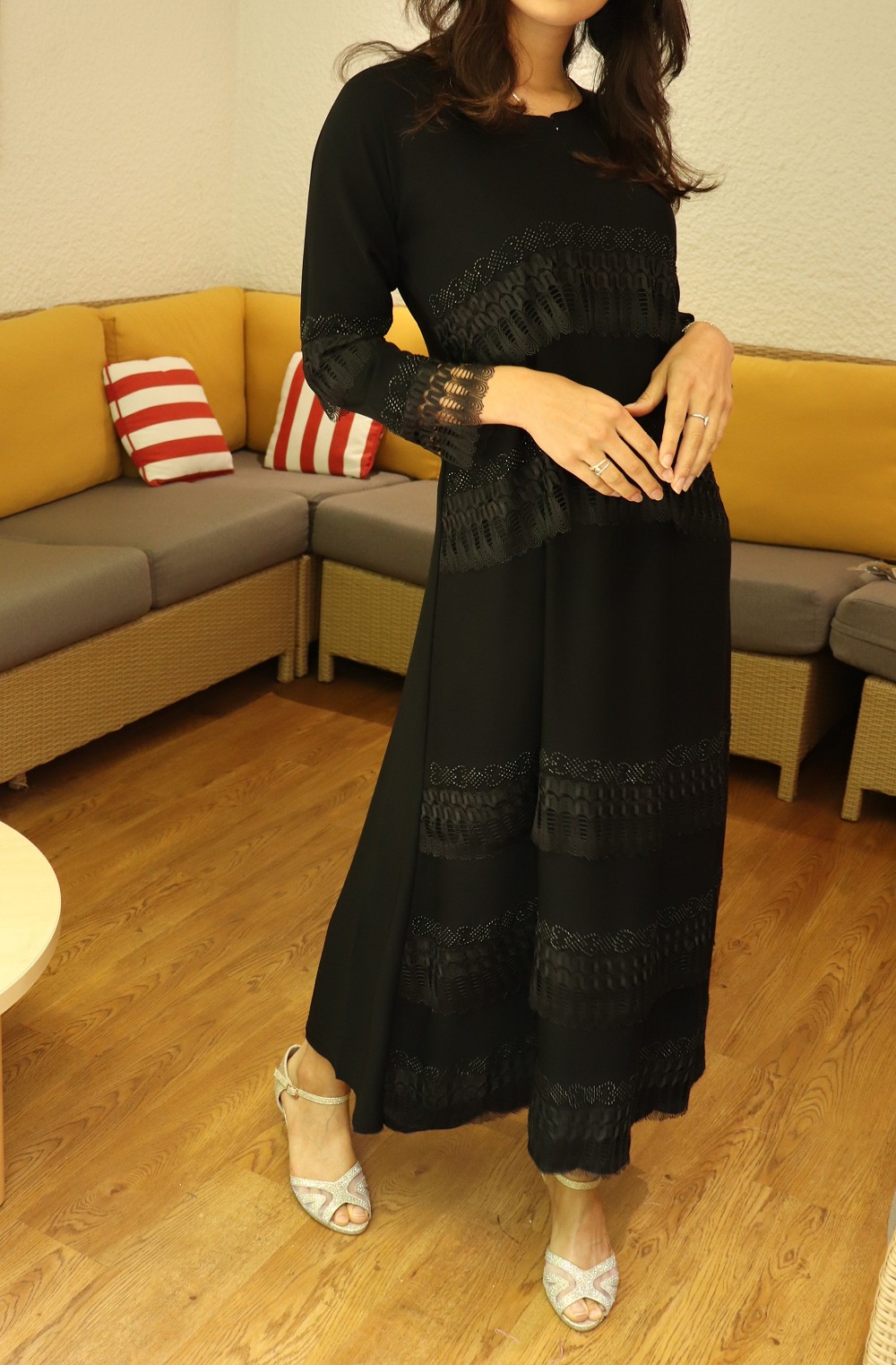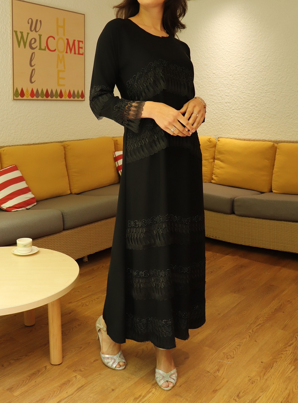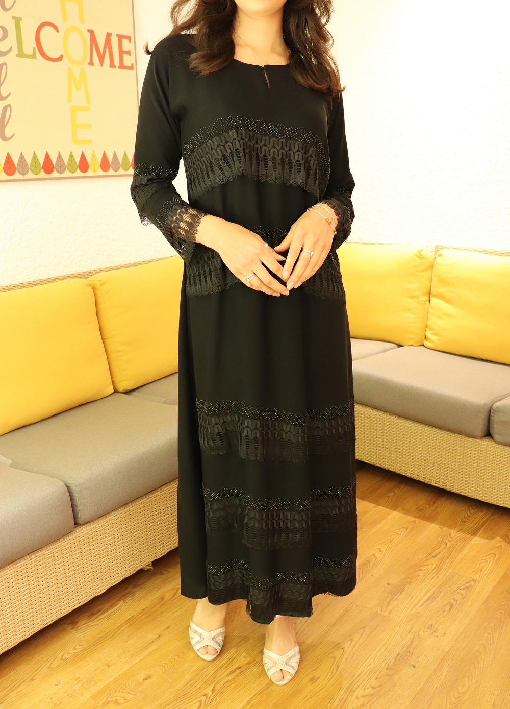 Robe Abaya Dubaï noire de qualité avec nombreuses perles noires et strass - REF. 38119 (45.00 €)