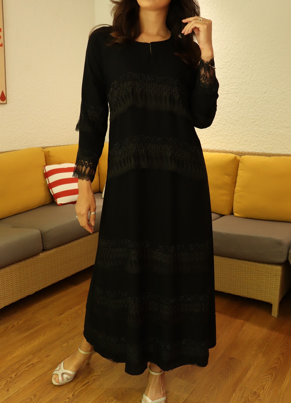 Robe longue élégante avec broderies et pompons pour femme - Couleur Noir - REF. 37033 (29.00 €)