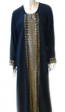 Abaya des Emirats - Robe Noire ornée de broderie et de strass - REF. 31074 (39.00 €)