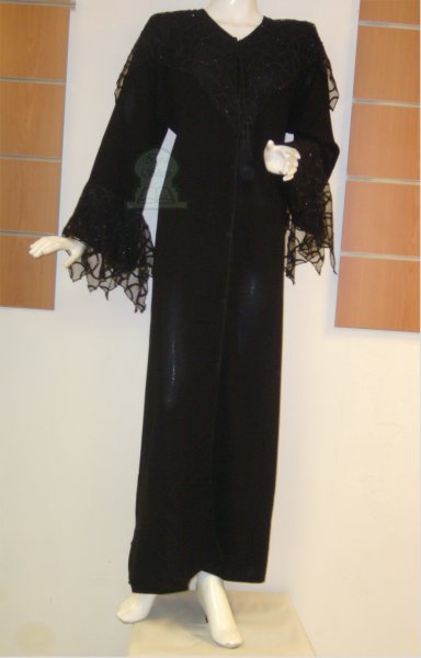Abaya noire en dentelle pour soirées.