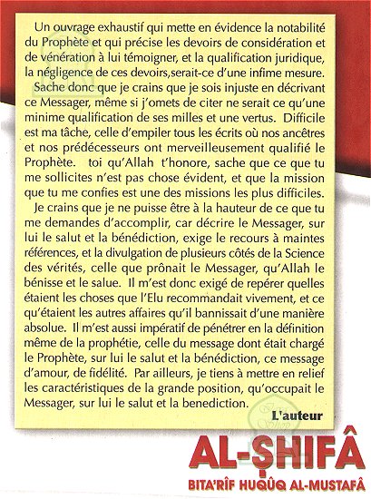Al-Shifâ Bita'rîf Huqûq Al-Mustafâ en Français : Déclaration parfaite des obligations de vénération envers l'Elu Prophète (SAW) - REF. 18806 (18.00 €)
