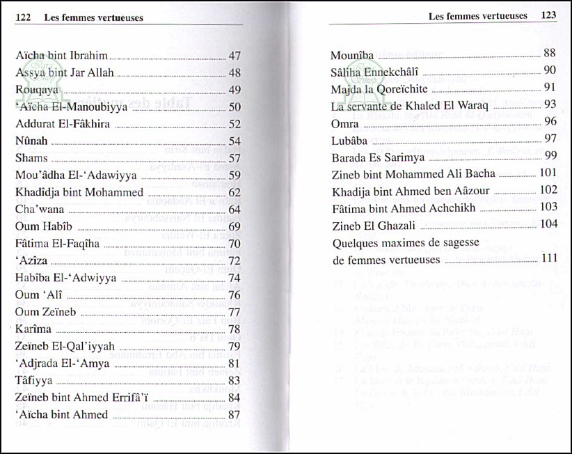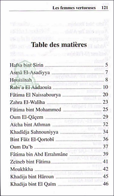 Ce livre décrit les principaux aspects de la vie de vertueuses musulmanes. Depuis l'apparition de l'Islam, des femmes vertueuses ont renoncé et se sont désintéressées des désirs de la vie terrestre. Elles ont vécu dans l'adoration de Dieu, dans l'invocation et dans la prière. Toutes leurs oeuvres étaient bénéfiques pour les autres. Il existera toujours des femmes pieuses jusqu'à la fin des temps.