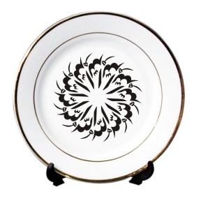 Assiette en porcelaine avec calligraphie artistique du Nom Divin "Allah" qui est répétés et imbriquée en forme de cercle.