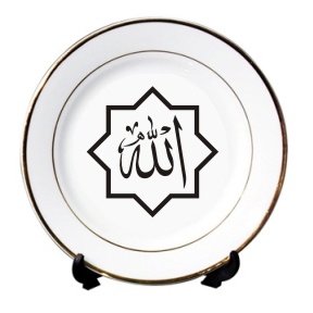 Assiette en porcelaine avec bordure doree et calligraphie "Allah" -