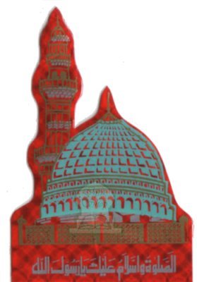 Autocollant La "Mosquée de Médine" rouge avec effet holographique et inscription de la salutation sur le prophète Mohammed (PBSL).