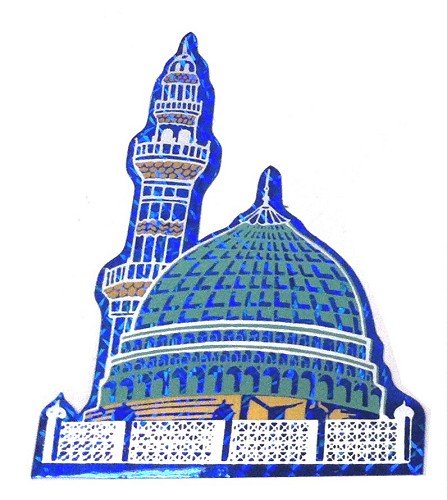 Autocollant "La Mosquée de Medine" holographique vert (salat salam ala rasoul allah) - REF. 12003 (0.50 €)