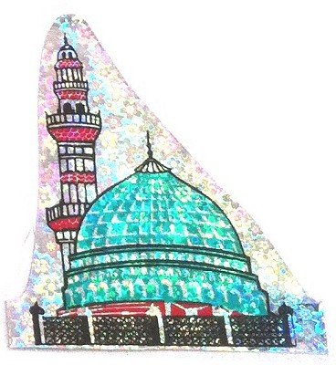 Voici un magnifique autocollant de "La Mosquée de Medine" de couleur bleu, vert et rouge avec effet holographique a coller ou bon vous semblera.