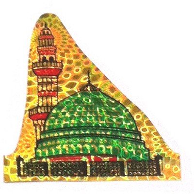 Autocollant "La Mosquée de Medine" holographique vert (salat salam ala rasoul allah) - REF. 12003 (0.50 €)