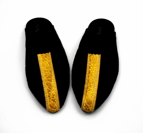 Jolie babouche traditionnelle marocaine pour enfants / garçons, de fabrication artisanale, faite de daim (composition daim) couleur noir , très confortable au pieds.