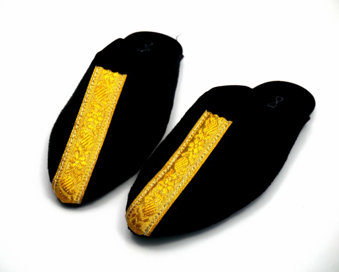 Le daim avec lequel cette babouche a été fabriquée, sa semelle, et son extrémité arrondie font de cette pantoufle une chaussure agréable à porter, dehors comme à la maison...