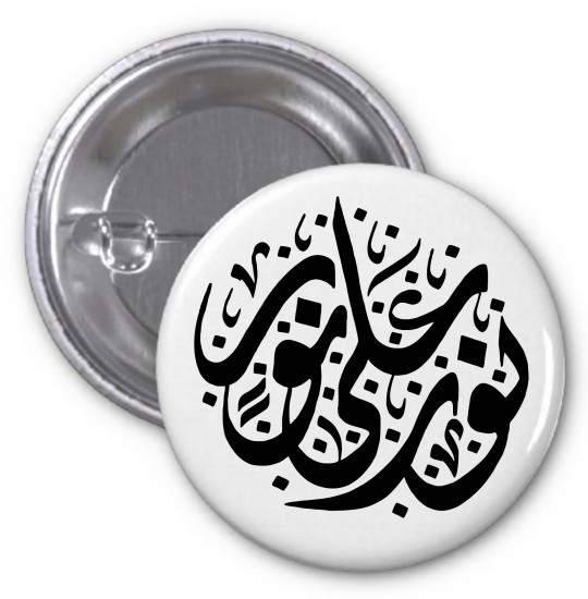 Badge avec calligraphie de l'expression "Nour'ala nour" (lumière sur lumière نور على نور) de la Sourate La Lumière (An-Nour) Verset 19.