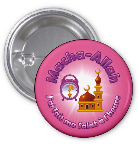Badge Macha-Allah : J'ai fait ma salat à l'heure (Rose) Deco & Cadeau