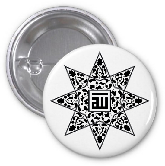 Badge avec calligraphie "Allah" à l'intérieur d'arabesques en fleur sous forme d'une étoile.