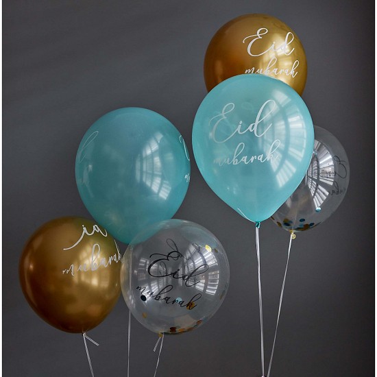 Ballons "Eid Mubarak" multi couleurs et a confettis (Paquet de 6 ballons de 30 cm)