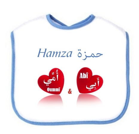 Bavoir pour bébé avec prénom personnalisé en arabe et/ou français. Excellente idée cadeau pour une naissance.