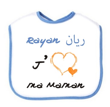 Bavoir pour bébé avec prénom personnalisé en arabe et/ou français. Excellente idée cadeau pour une naissance.