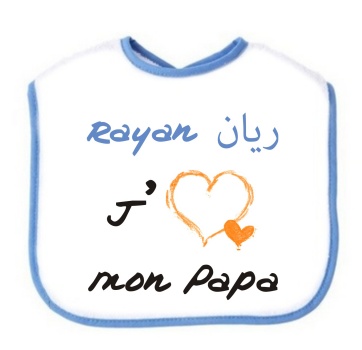 Bavoir personnalisé pour bébé : J'aime Oummî & Abî - Bleu avec prénom masculin - REF. 18823 (8.00 €)