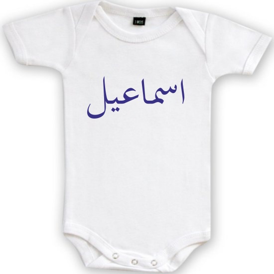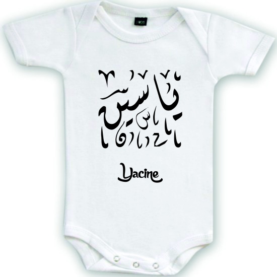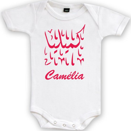 Body bebe a manches courtes avec calligraphie arabe personnalisee de son prenom