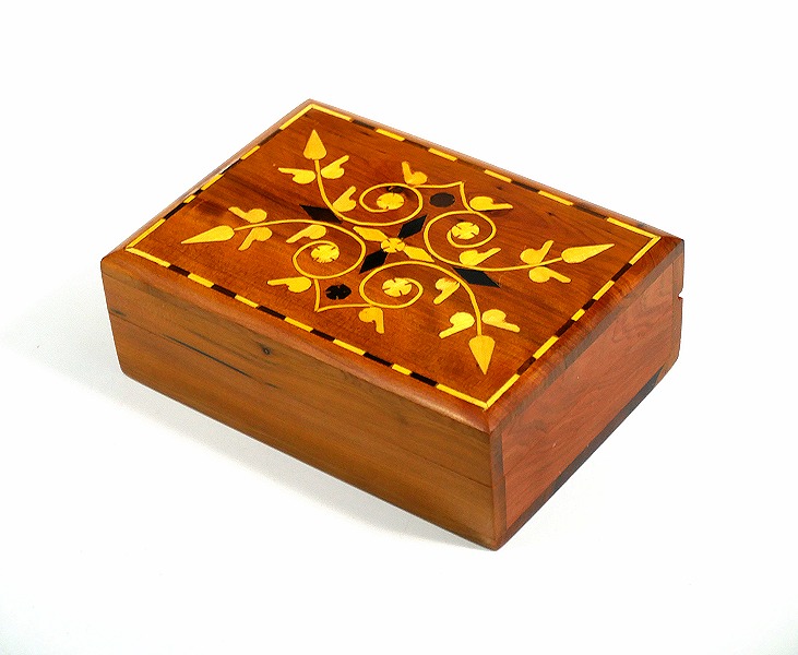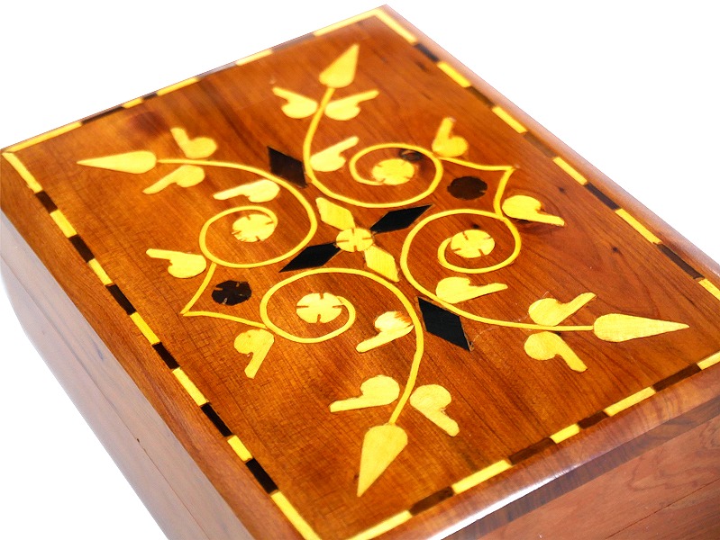 Boite a bijoux artisanale rectangulaire en bois de thuya avec jolies motifs fleurs