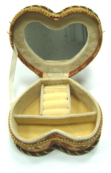 Boite à bijoux sous forme de cœur, avec miroir.