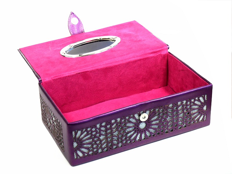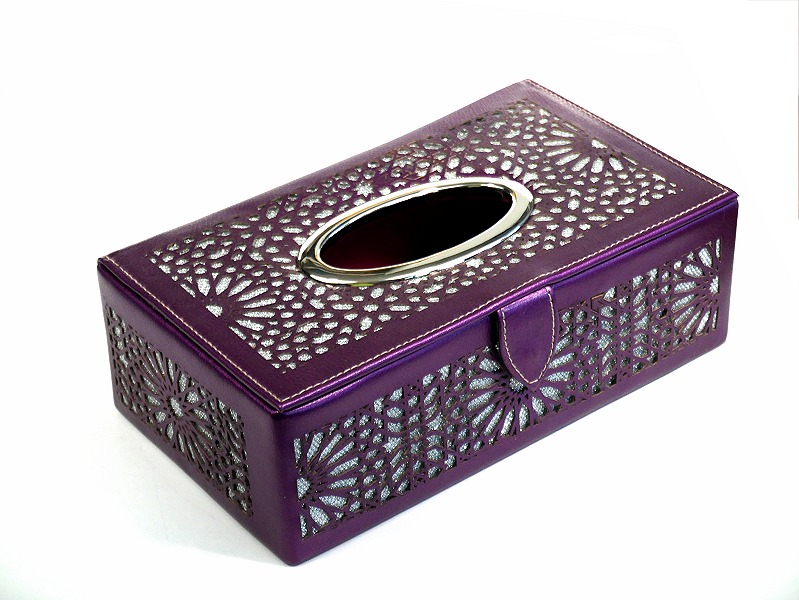 Offrez-vous cette magnifique boîte à mouchoirs en cuir, un objet décoratif de fabrication artisanale marocaine, le tout enrobé de savoir-faire des artisans Marrakechis...