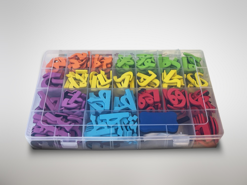 - Les lettre magnétiques (4 mm d'épaisseur) sont en plusieurs couleurs différentes (classées par type de lettre avec toutes les combinaisons possibles).