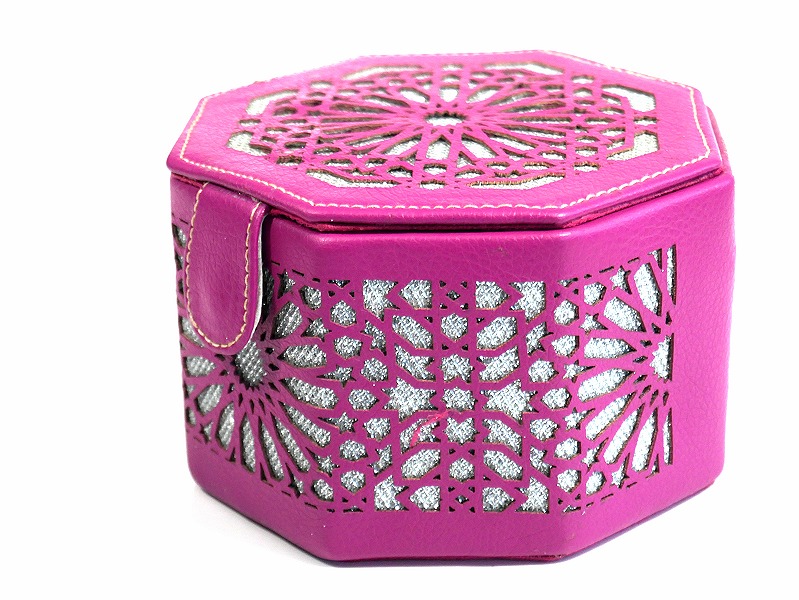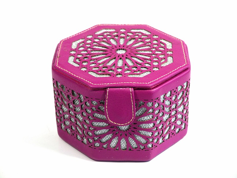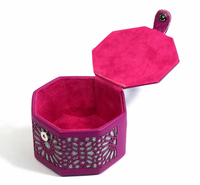 Boite de Rangement artisanale de forme octogonale en cuir avec des jolies motifs argentés - Couleur mauve Deco & Cadeau