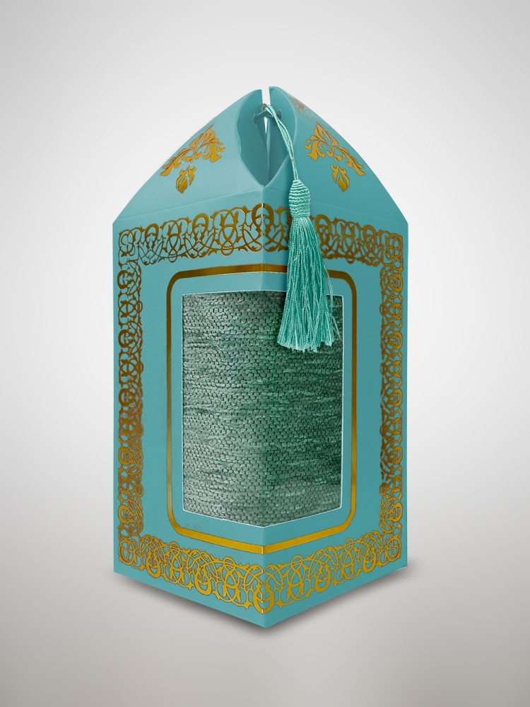 Coffret Cadeau "Ramadan Kareem" : Boite cadeau avec Tapis et Sebha deluxe assorti - Couleur Bleu ciel doré - REF. 39328 (14.90 €)