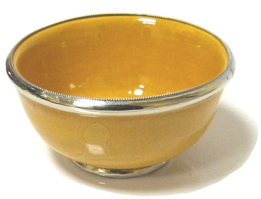 Bol moyen en poterie marocain de couleur jaune émaillé et cerclé de métal argenté - REF. 15276 (6.50 €)