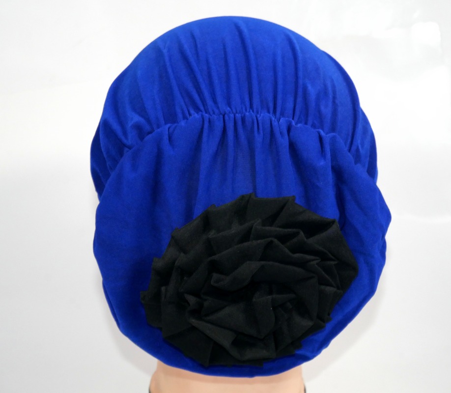 Bonnet en tissu satin avec grande fleur (bleu marine) - REF. 19741 (3.50 €)