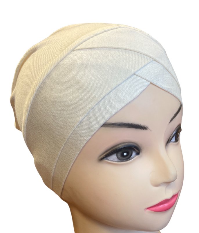 Bonnet hijab croisée à tresse pour femme - Couleur Beige - REF. 39958 (4.90 €)