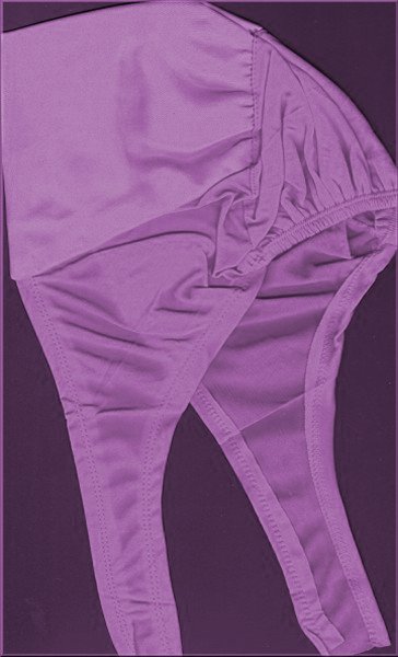 Avec élastique à l’arrière et deux parties de tissu à nouer. 100% polyester. Couleur violette.