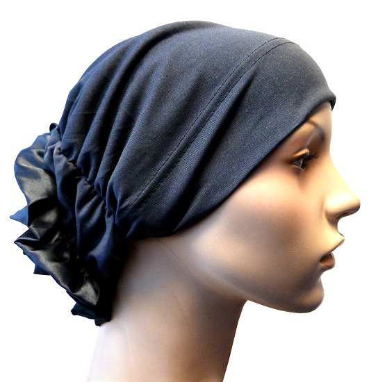 Bonnet en tissu satin avec grande fleur (Gris anthracite) - REF. 21533 (3.50 €)
