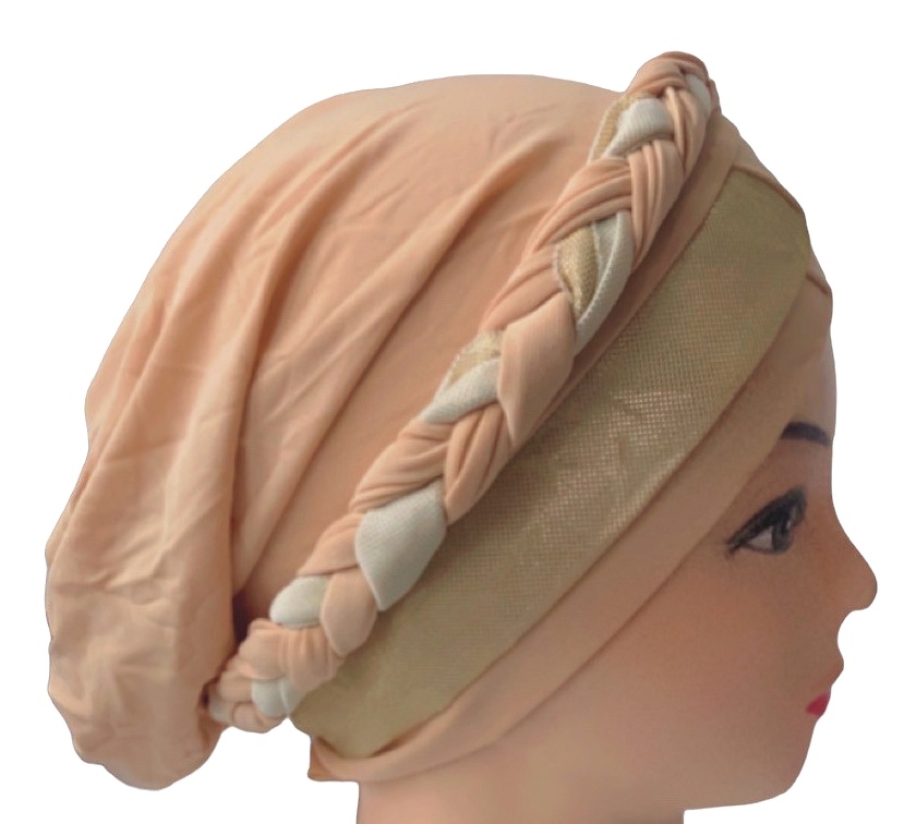 Bonnet hijab croisée à tresse pour femme - Couleur Beige Vetement & Accessoire