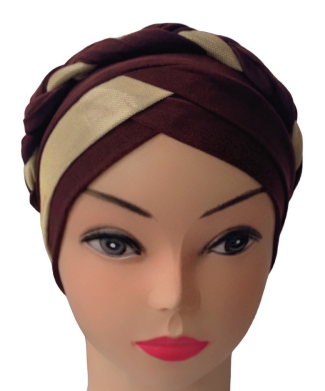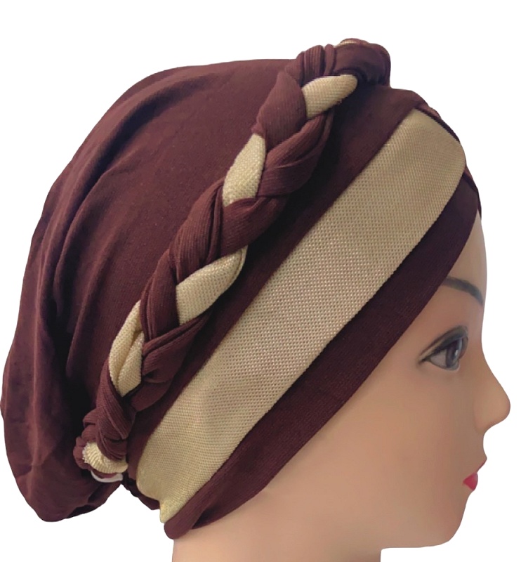Bonnet hijab croisée à tresse pour femme - Couleur Marron foncé Vetement & Accessoire
