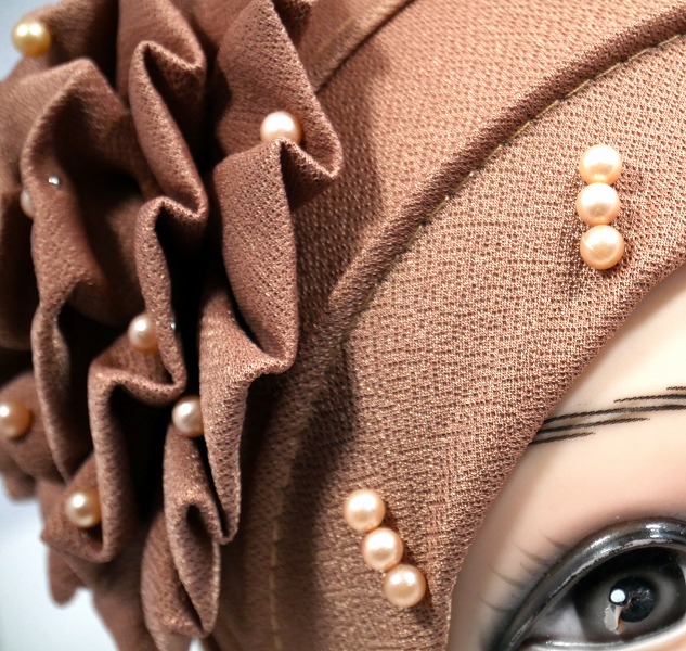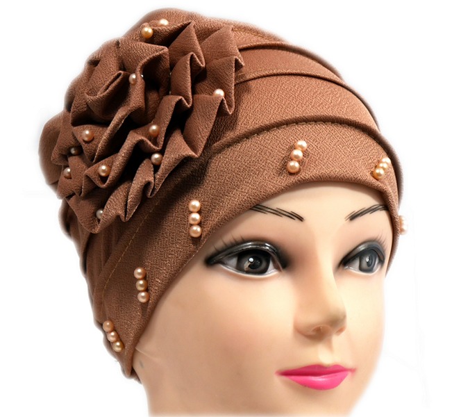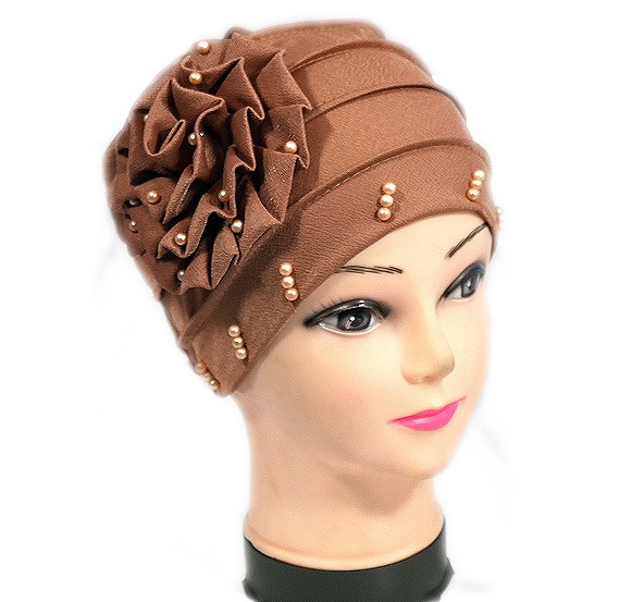 Bonnet perlé avec une large fleur sur le côté.