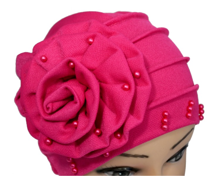 Bonnet perlé avec une large fleur sur le côté de couleur rose unie Vetement & Accessoire