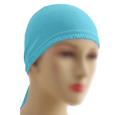 Bonnet en coton bleu ciel uni perlé pour femmes. Photo non contractuelle, les caractéristiques du produit (couleur, forme,dimensions, décoration ...) pouvant quelque peu varier selon les lots.