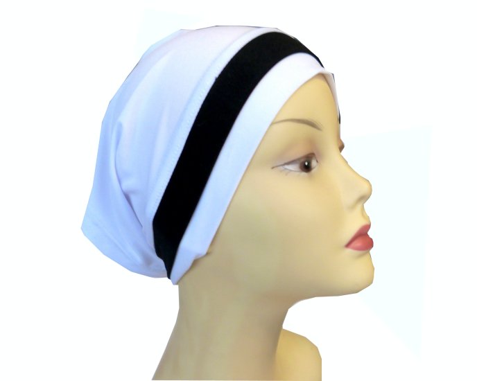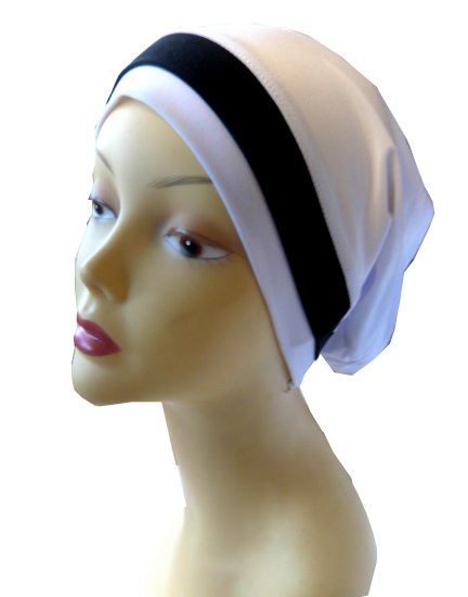 Bonnet extensible avec une bande de tissu noire à l'avant pour habiller vos hijabs avec style et modestie 24 cm.