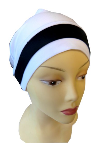 Bonnet tube habillé blanc assorti d'une bande noire - REF. 21929 (3.50 €)