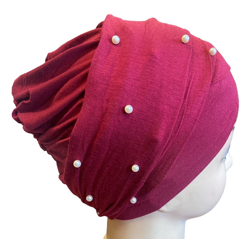 Bonnet turban croise devant avec bandelette perle a enrouler pour femme - Couleur Rouge