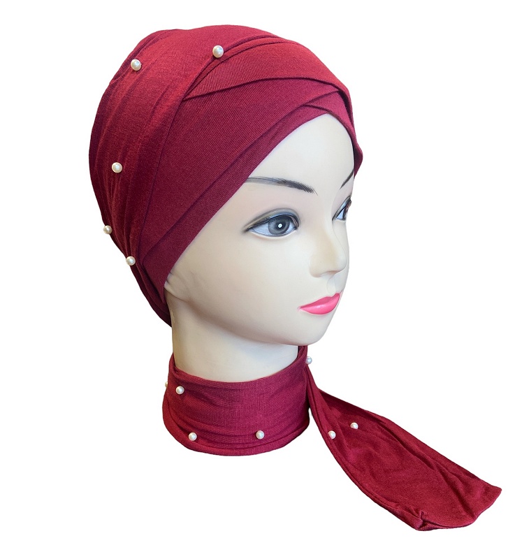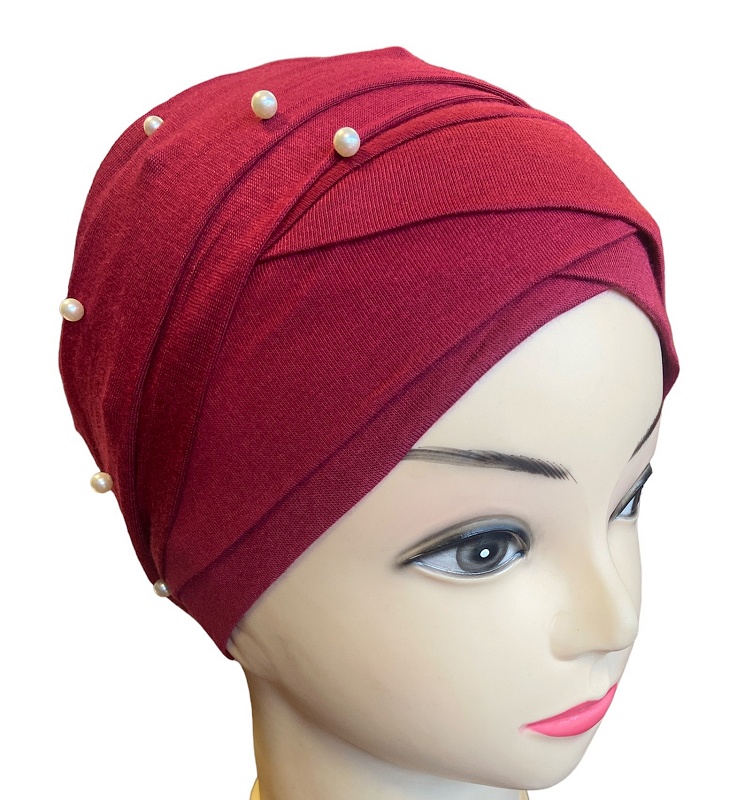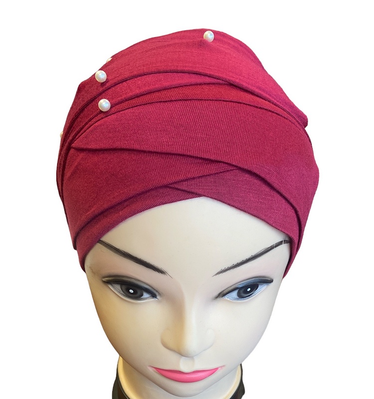 Bonnet turban croisé devant avec bandelette perlé à enrouler pour femme - Couleur Rouge Vetement & Accessoire