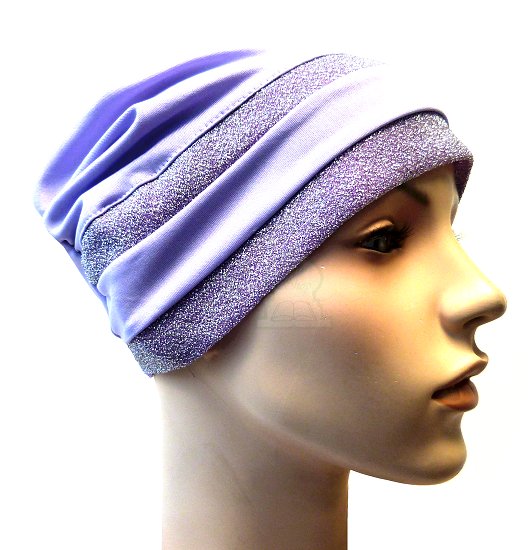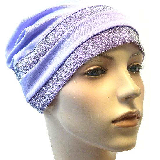 Bonnet violet en coton avec deux bandes paillettes en violet. Composition 35% coton 65 polyester.