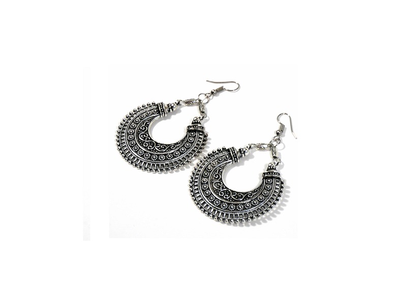 Boucles d'oreilles pendantes, style berbère, fabriquées en métal argenté.