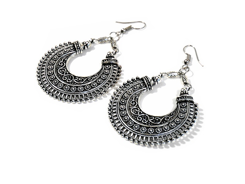 Boucles d'oreilles artisanal pendantes en métal argenté  Deco & Cadeau