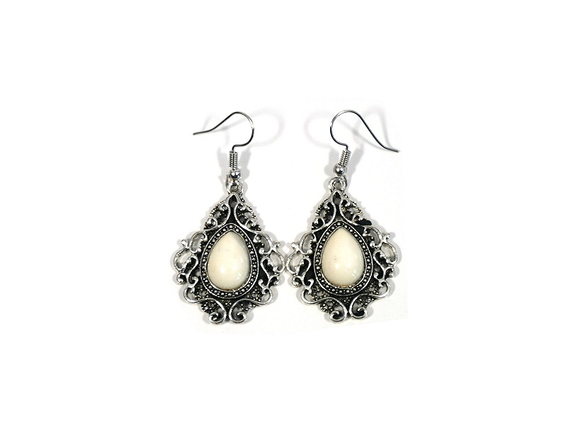 Boucles d'oreilles pendantes en métal argenté ciselé serties de pierres noir - REF. 29554 (5.90 €)