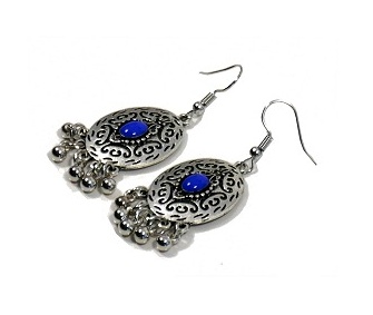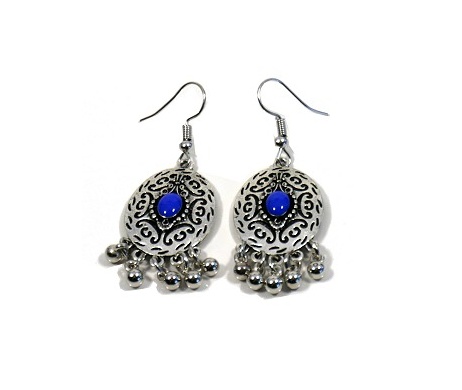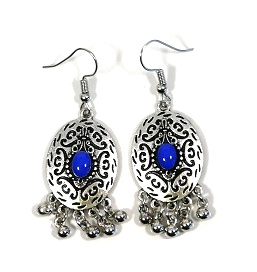 Boucles d'oreilles pendantes, style berbère, fabriquées en métal argenté - composition argent - délicatement ciselé, serties de pierres bleu.